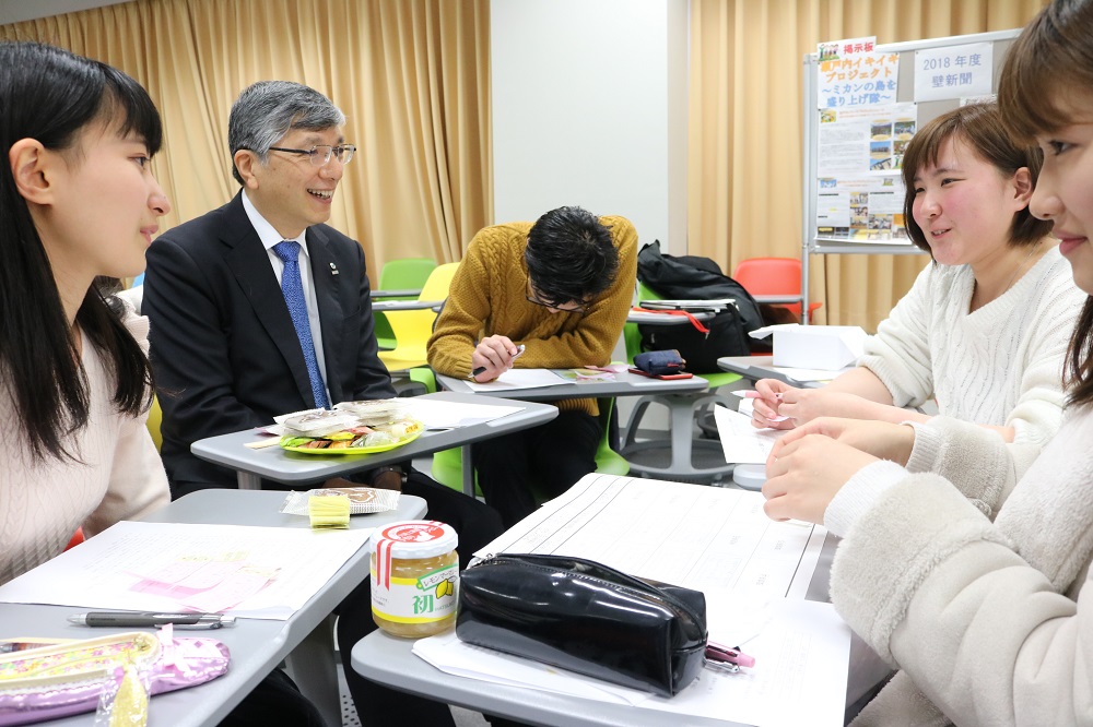 グループディスカッションには焼廣益秀学長(写真左から2人目)も参加