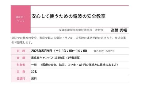 公開講座「安心して使うための電波の安全教室」参加募集中