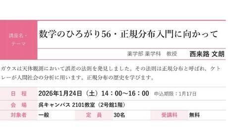 公開講座「数学のひろがり56・正規分布入門に向かって」参加募集中