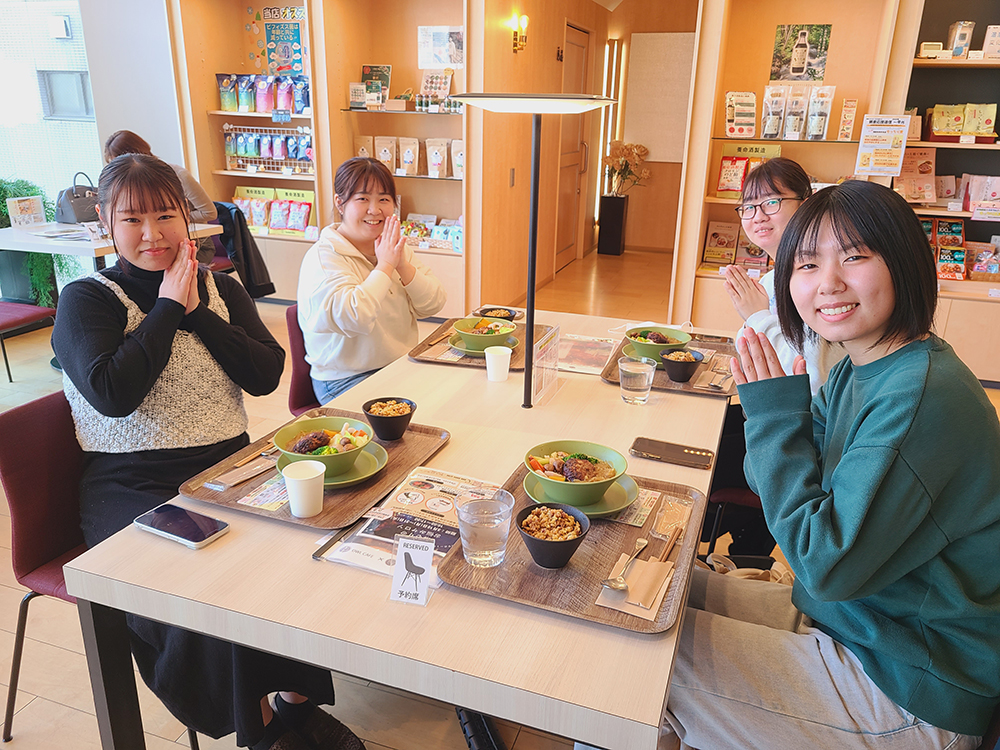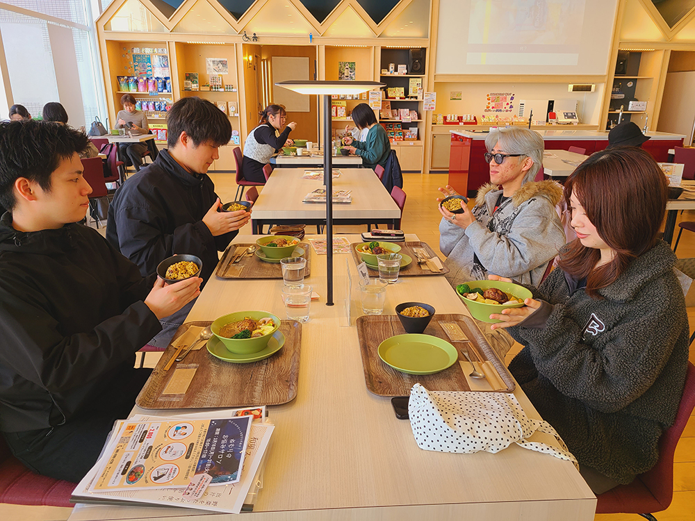 2日間提供したコラボメニューを無事完売しました。今年度は、“カレー”をテーマにして、学生が悩み・考えて作り上げたメニューをたくさんの方に食べていただき、感謝の気持ちでいっぱいです。2025年4月から2026年2月26・27日まで“健康な食事”を地域の方に提供するために、学生たちが納得のいくよう何度も試作を繰り返し、中間発表ではオールカフェさんからのご意見も取り入れながら更により良いものになるよう当日を迎えました。