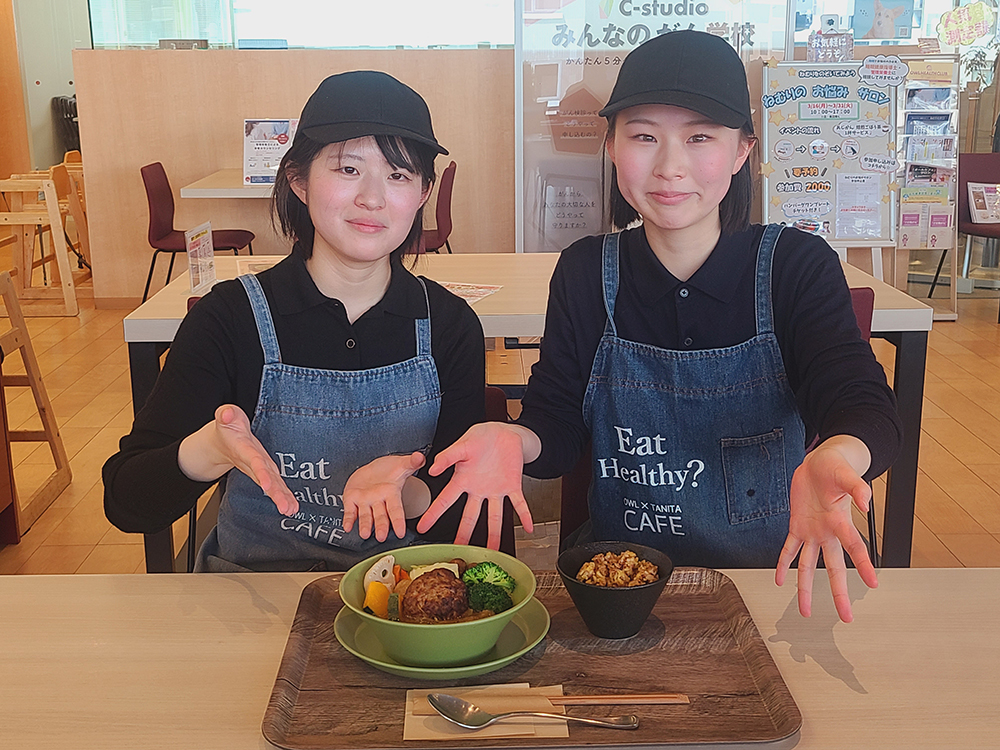 医療栄養学科では、マイライフ株式会社が運営する「オールカフェ×タニタカフェ 呉店」の協力を得て、学生考案のオリジナルメニューを提供しています。