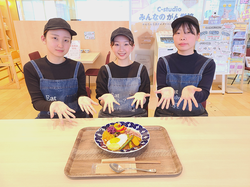 「オールカフェ×タニタカフェ 呉店」にて、2 月26 日、27 日の2 日限定で医療栄養学科の学生が考案したメニューを提供しました。同店とのコラボは今年で4 年目となります。
