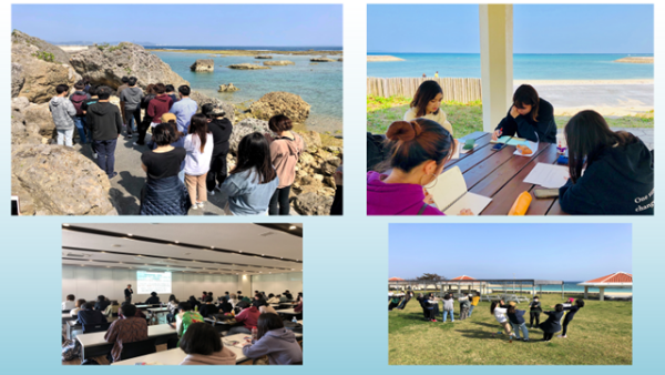 本学客員教授でウェルネス研究の第一人者の琉球大学国際地域創造学部 荒川雅志教授のプロデュースのもと、沖縄でのフィールド研修を行います。琉球大学での講義、学生との海などでの交流、沖縄南部のパワースポットや北谷のアメリカビレッジやホテル等で学びを深めます。沖縄で様々なフィールドで、文化や人材を知ること、守ること、創造すること、まちづくりを考えます。