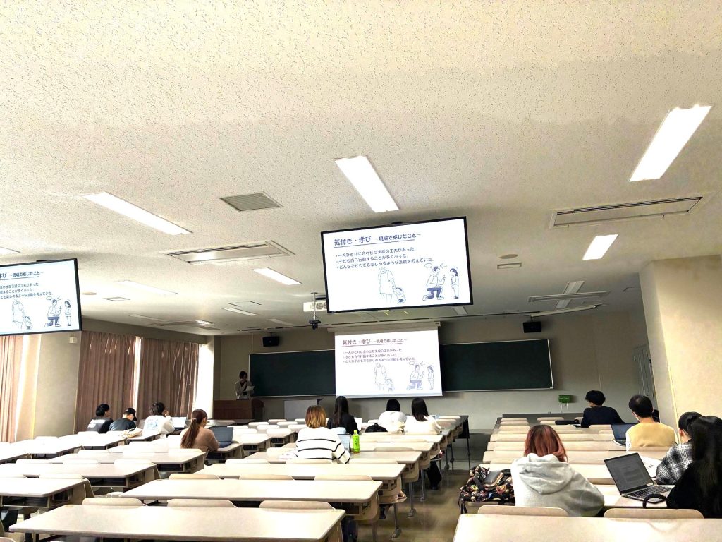 今回は、2年生対象の「臨床心理学とキャリアプランニング」「子ども・健康支援の心理学とキャリアプランニング」「ビジネス・社会心理学とキャリアプランニング」の合同演習として、各学生が夏休みに経験した将来の進路を考える経験の発表会を実施しました。