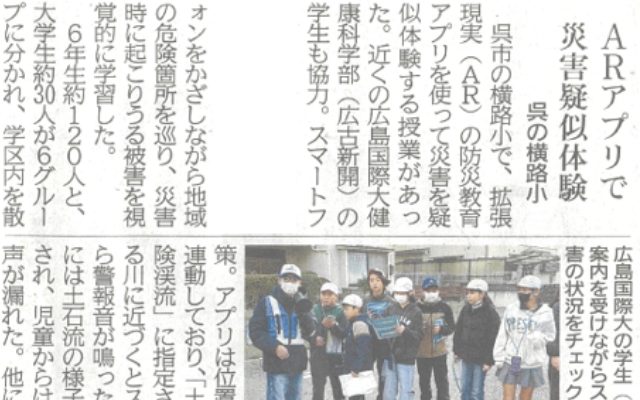 [地域創生学専攻] 中国新聞 2026.1.21掲載「ARアプリで災害疑似体験 呉の横路小」の記事が掲載されました。