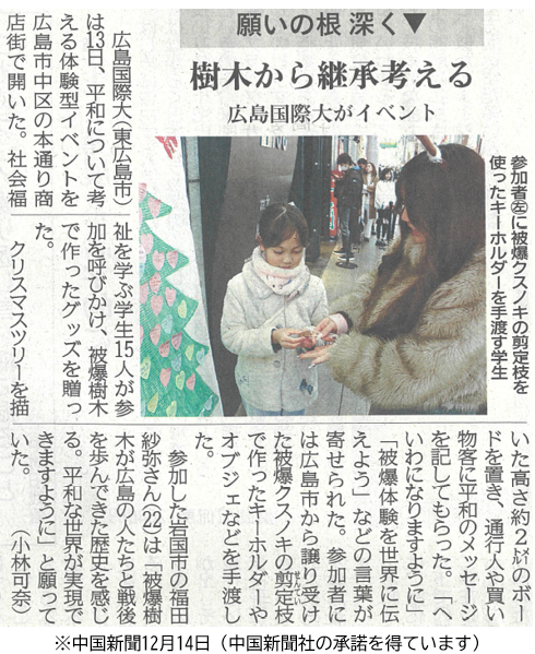 中国新聞 2025.12.14掲載「樹木から継承考える 広島国際大がイベント」の記事が掲載されました。