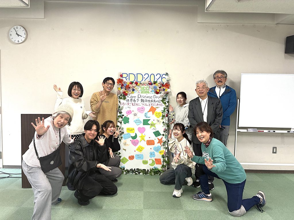 2026年2月28日(土)、広島県健康福祉センターで開催された「全世界希少・難治性疾患の日(RDD2026)in 広島」に、本学の難病プロジェクト「Mebia」に所属する4年次生5名と教員が参加しました。