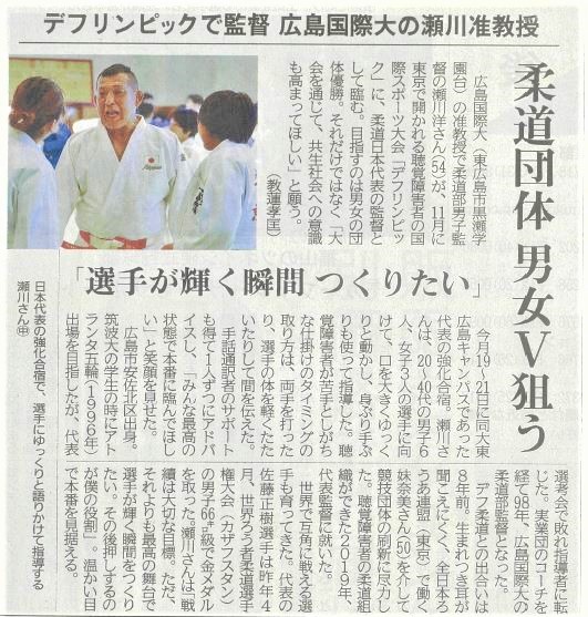 中国新聞 2025.9.24掲載 〔健康スポーツ学科〕「デフリンピックで監督 広島国際大の瀬川准教授」の記事が掲載されました。