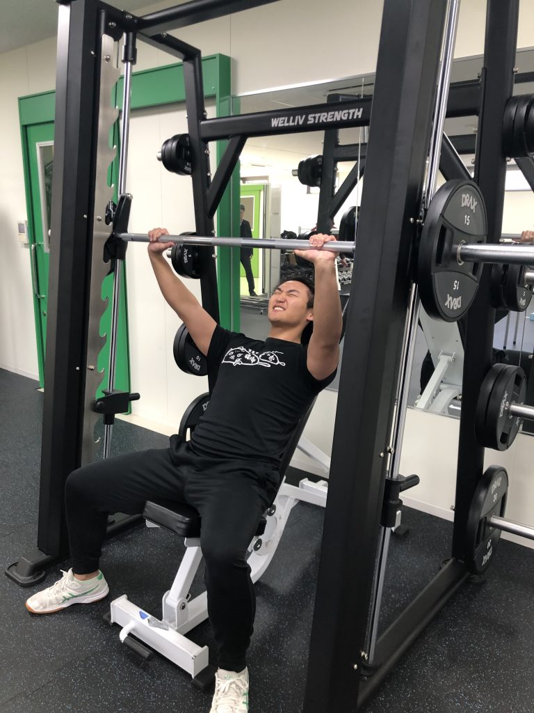東広島キャンパスAWC(アクティブ・ウェルネス・センター)内にあるトレーニングルームに、新たなトレーニング機器「スミスマシン」が登場しました。