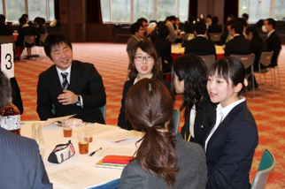 当日は27名のOB・OGが駆け付け、後輩学生とテーブルを囲み、自身の就職活動や大学院での学び、社会人生活など幅広く体験談を語ってくださいました。
