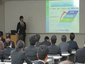 キャリア支援委員長の岩田先生より本学が取り組んでいる就業力育成システムの紹介がありました。