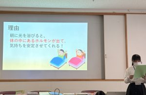 3月7日(土)に、呉市にある広市民センターにて、LCFプロジェクトメンバーの看護学生が、呉市内の小・中学生を対象に睡眠の大切さについて健康教育を行いました。