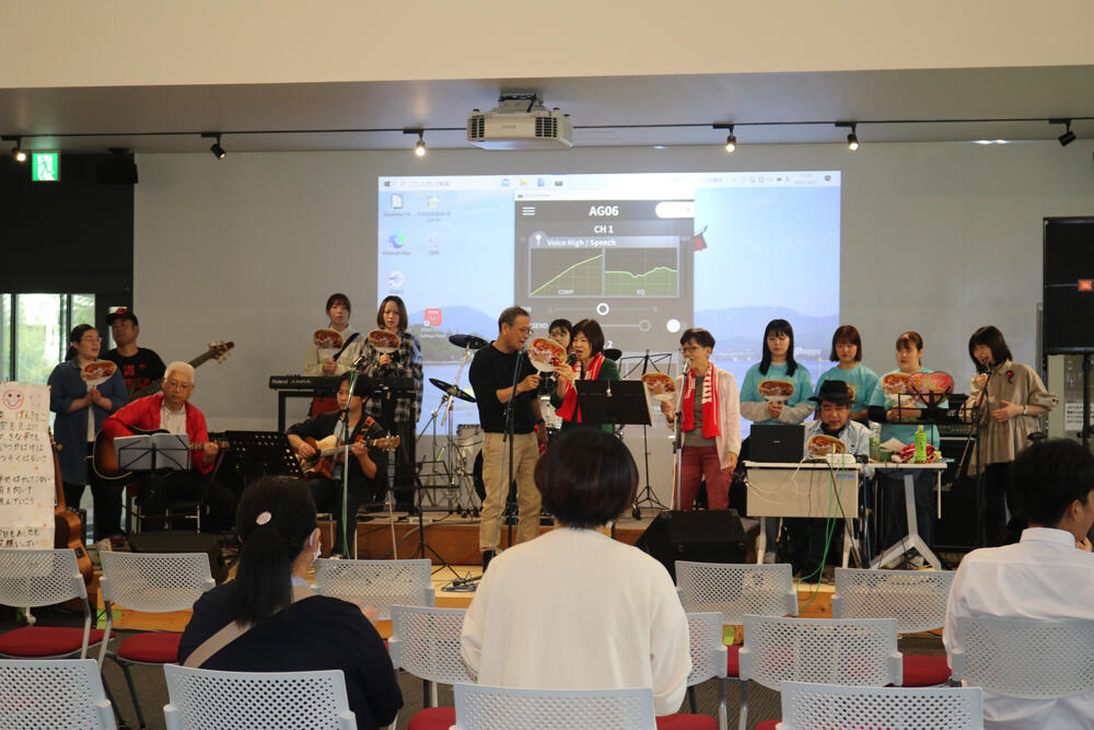 コラボLIVEも開催されました。げんきなこ、元気さんの同級生の白木先生、高島夫妻、瀬戸内イキイキプロジェクトの皆さん、呉軽音楽部の在校生、呉アコースティックギター部の卒業生、教職員による世代や肩書き、大学の枠を超えた、素晴らしいLIVEとなりました。