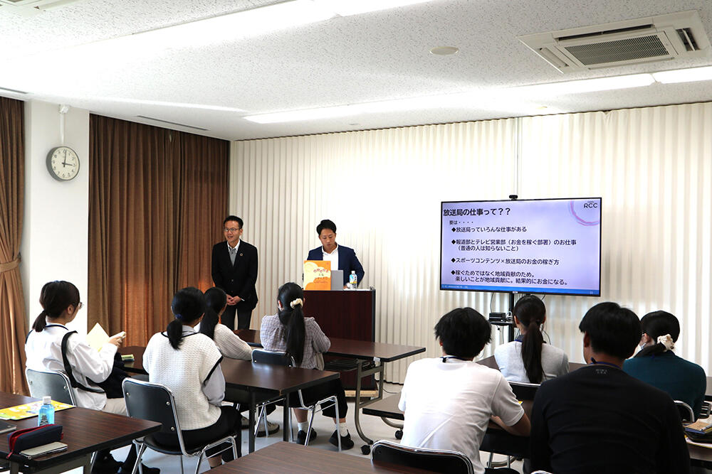 2025年10月17日(金)健康科学部の「スポーツエンターテイメント演習」履修学生12名が、株式会社中国放送(RCC)を訪問しました。RCCの営業部の方による講演会では、放送局の社会的役割や地域密着型の取り組みについて、実例を交えて学ぶ貴重な機会となりました。