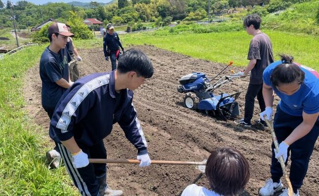 6/1(土)、6/8(土)にサツマイモ(紅はるか100本)の畝立てと植え付けを行いました。天候にも恵まれ在学生を中心に20人以上の参加者のご協力により畝立てと植え付け作業が無事に終了しました。