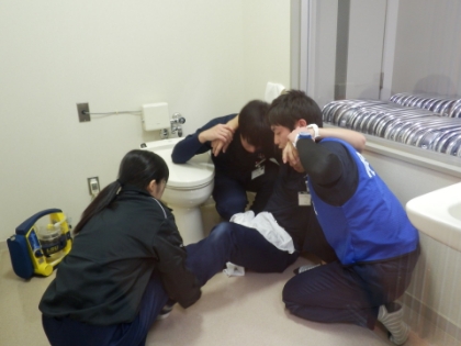 住宅内での救急現場を再現した救急活動や搬送方法を学ぶことができます。