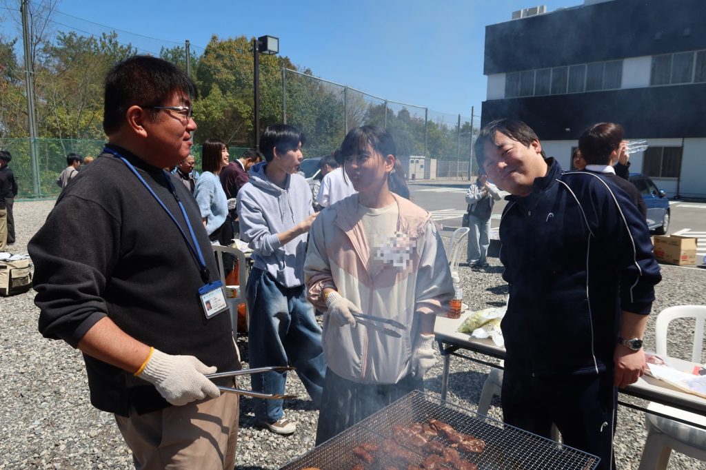 BBQを楽しみながら自然と会話が弾み、会場は教員も交えて終始賑やかな雰囲気に包まれていました。用意した食材も好評で多くの学生が満足した様子でした。