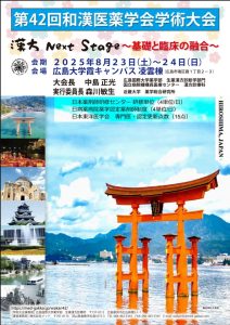 2025年の第42回の学術大会がNext Stageを夢想う学術集会になったことを嬉しく思います。会員の先生方はもちろん、生薬・漢方などにおける研究、臨床、教育に関わる多くの皆様にご参加いただき感謝しております。