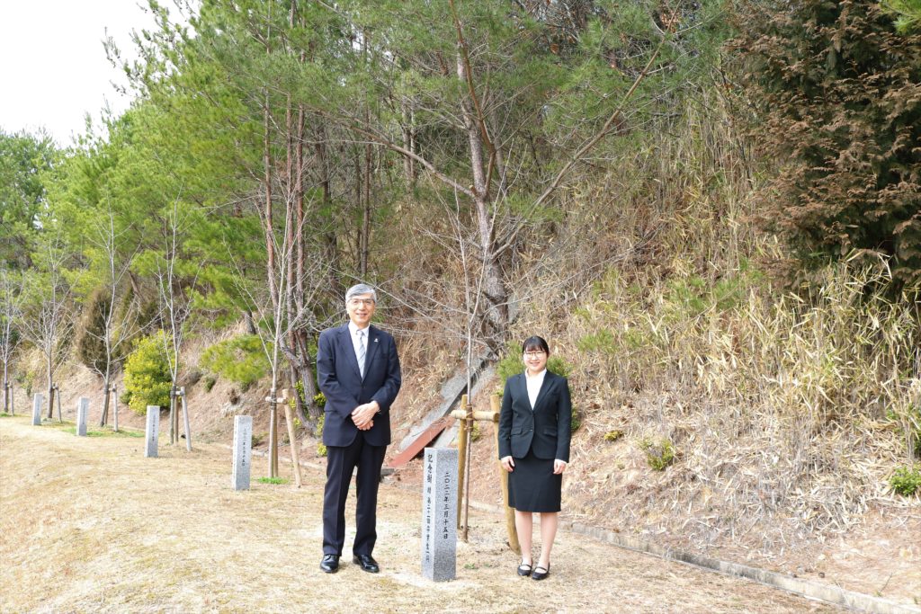 毎年、卒業生の皆さんから大学へ卒業記念品をいただくのですが、東広島キャンパスの卒業生の皆さんからは、写真のような桜の木をいただき、野球場の周囲に植樹しました。呉キャンパスの卒業生の皆さんからは新入生を歓迎する横断幕をいただきました。こちらの写真は後日ご紹介します。卒業生の皆さん、ありがとうございました。大切にします。