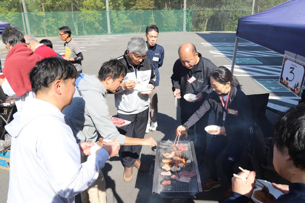 ソフトバレー大会で心地よい汗を流した後はBBQです。おいしいお肉や野菜、焼きそばを味わいながら、部署を超えた会話も弾みました。コートでの真剣(?)な表情とは打って変わり、笑顔あふれるリラックスした雰囲気の中で、お互いの労をねぎらい、親睦を深めることができました。