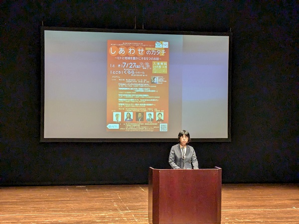 このイベントは、東広島市民を主対象に開催されているもので、「しあわせのカタチ~ヒトと地域を豊かにする5つのお話~」と題して、ウェルビーイングをテーマに、多様な幸せのあり方を市民とともに考えることを目的としています。