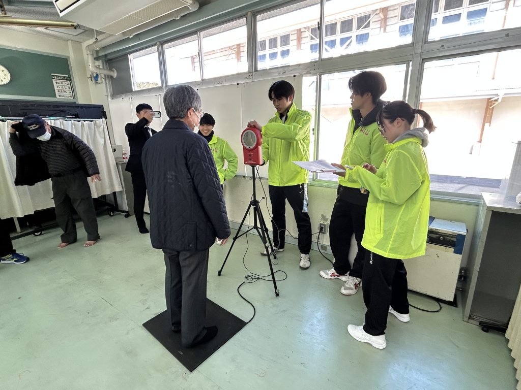 体力測定・健康測定コーナーは健康スポーツ学科の学生と教員が参加し、血圧測定や握力測定、長座体前屈、上体起こし、インボディ測定などを行いました。屋外で行われた「モルック体験コーナー」では、地域の方や子どもたちが楽しく参加し、学生との交流を深めました。