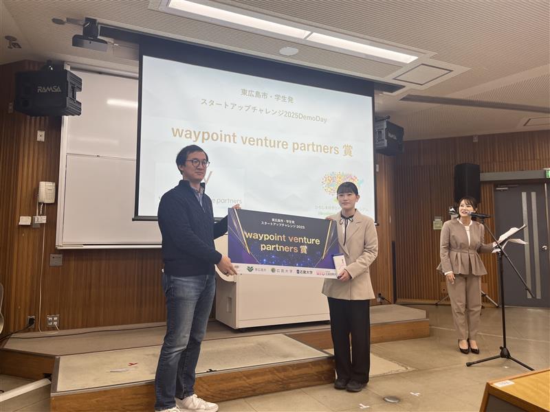 そして、各学生のプレゼンテーション後に審査員賞が発表され、初崎さんは見事に「最優秀賞」と「waypoint venture partner賞」をW受賞されました。本当におめでとうございました!