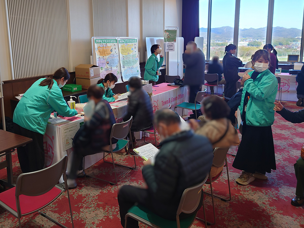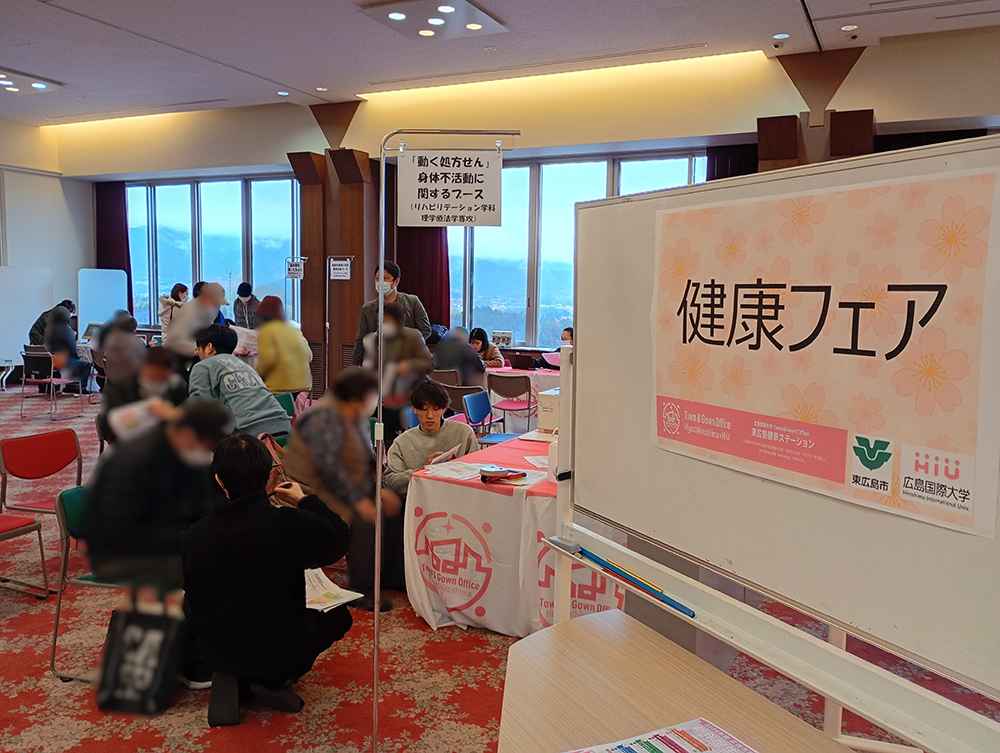 2026年2月25日~26日に本学東広島キャンパスにおいて、東広島市民を対象とした「市県民税申告相談会」が開催されました。今回は、東広島キャンパスでの開催に伴い、東広島市Town&Gown事業の取り組みの一環として、ご来場者を対象に、相談会場での待ち時間に健康チェックを体験いただく「健康フェア」のブースを東広島市と大学が共同で出展しました。