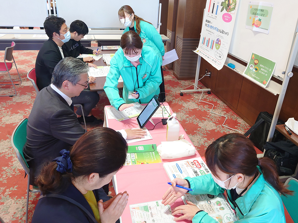納税相談の待ち時間を活用し、大変多くの方に健康に関する様々なチェックを体験いただきました。また、各ブースの運営に参加する学生の皆さんも参加者と積極的に交流されている姿が見られました。